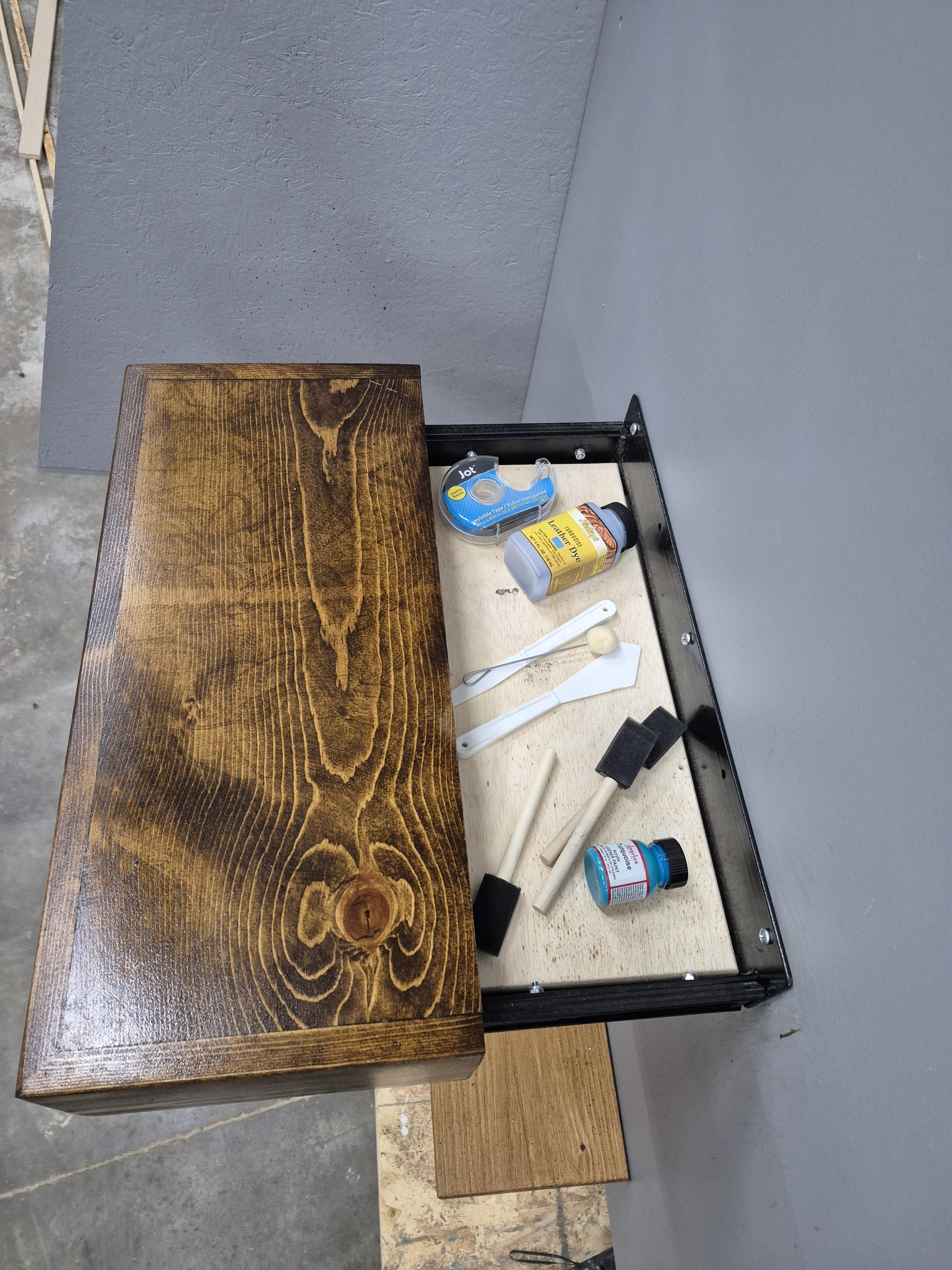 A clean, modern shelf with a concealed steel compartment built directly into the structure.